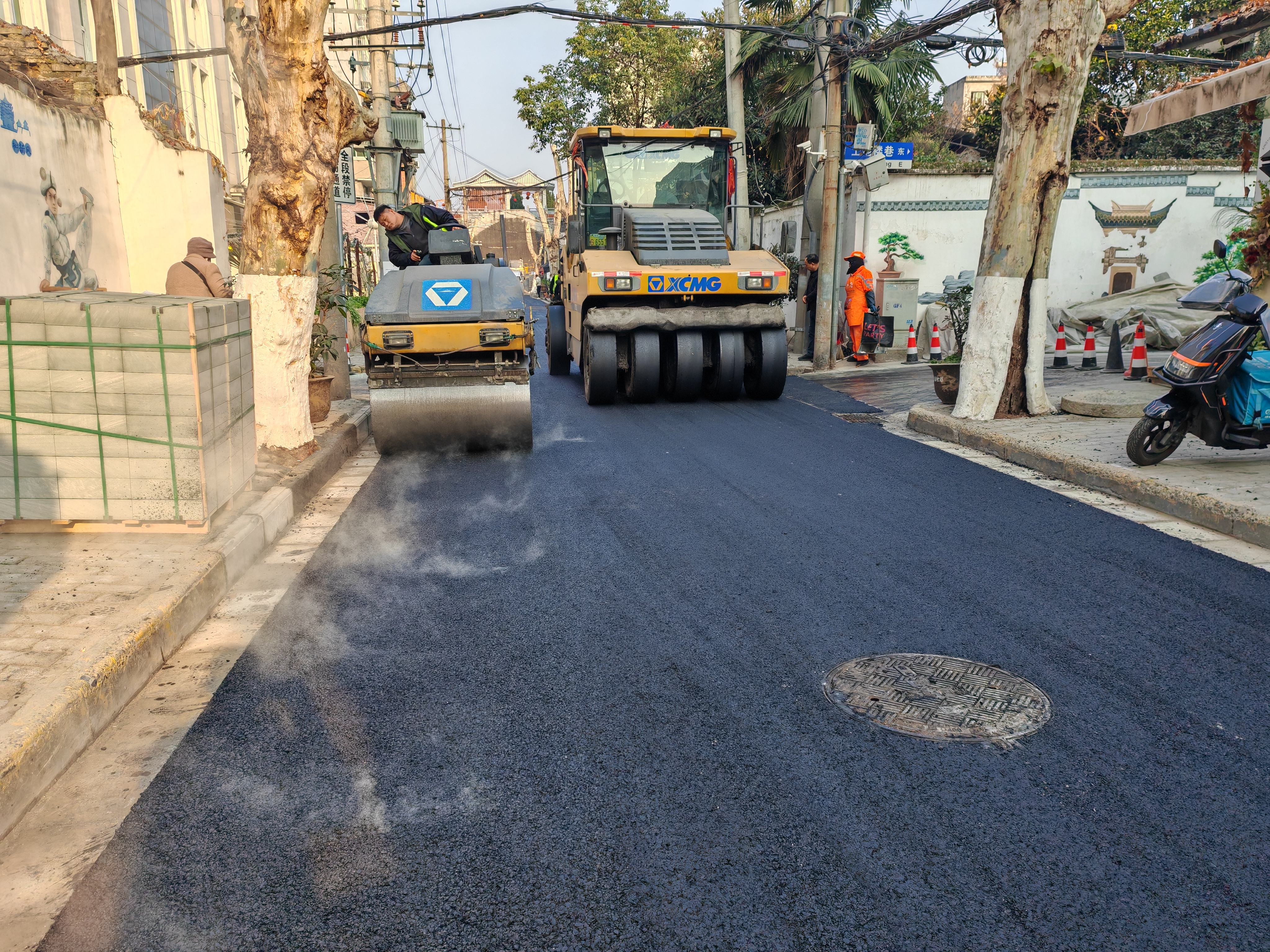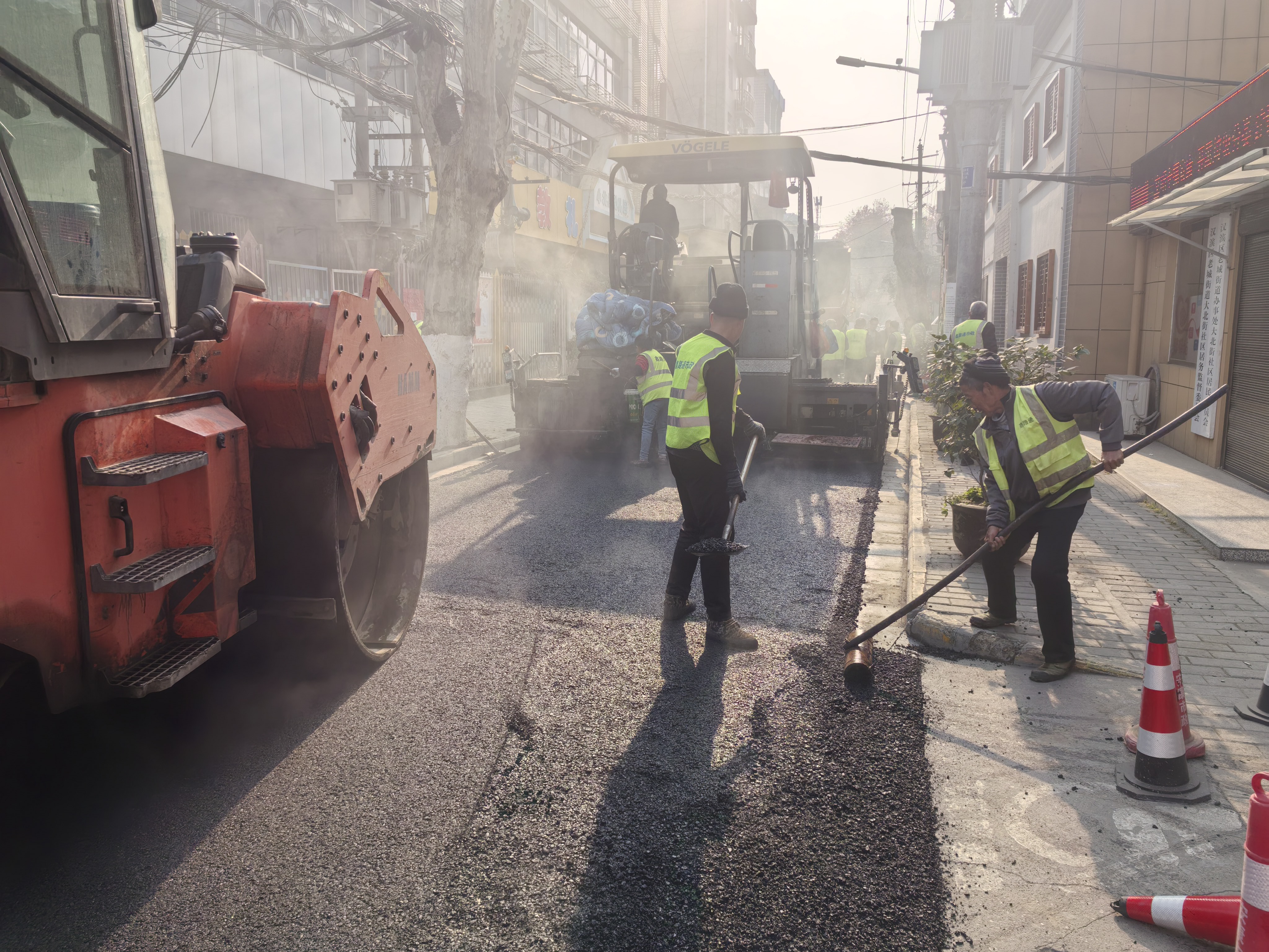 1月17日,我市中心城區(qū)小北街道路提升改造工程進入瀝青面層鋪設(shè)階段。(錢運立 攝)
