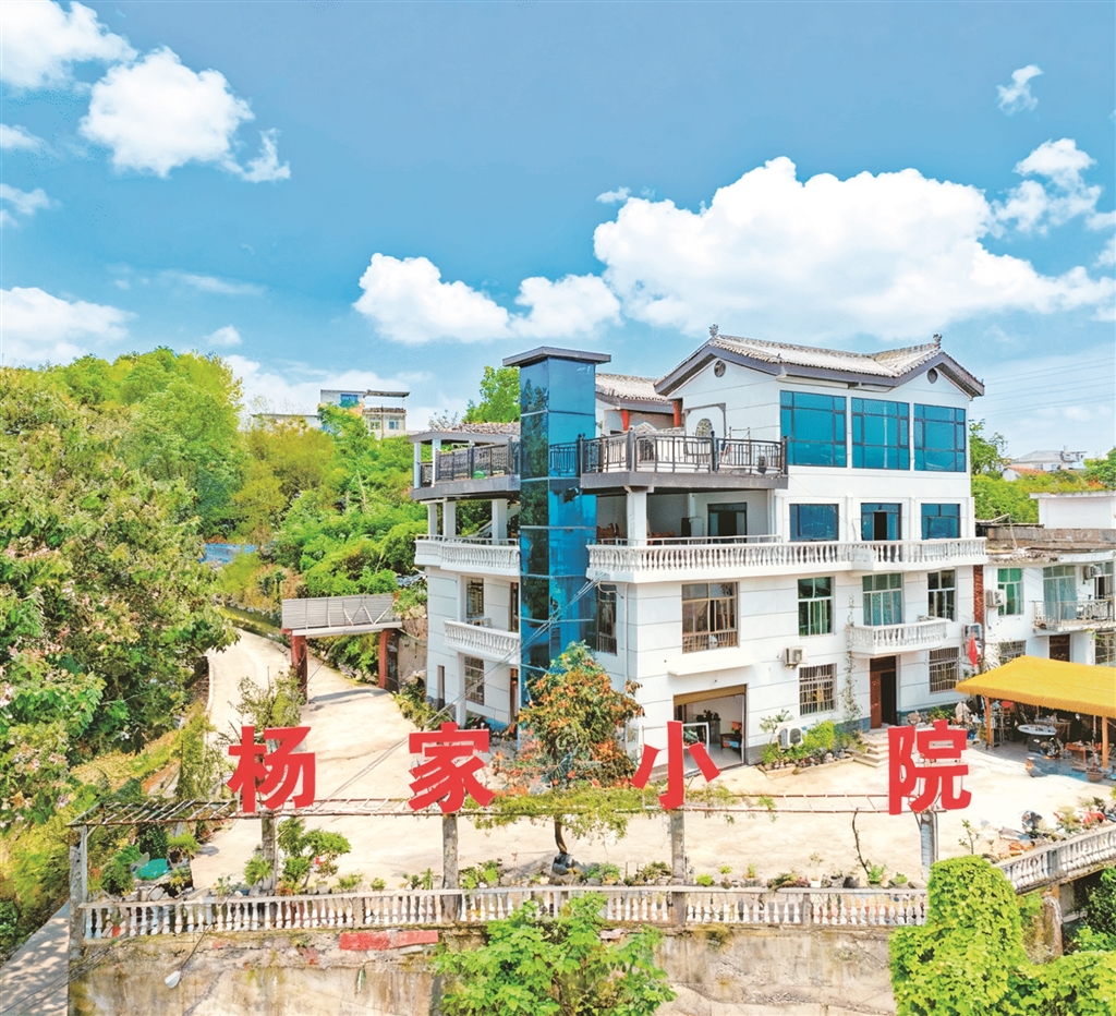 漢濱區(qū)張灘鎮(zhèn)立石村王家院子55戶農(nóng)房完成風(fēng)貌改造,昔日農(nóng)舍變?yōu)閯e具特色的“江景院落”。 李靖 攝