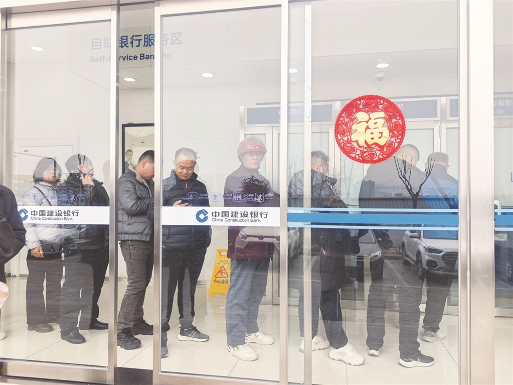 ④ 2月15日,漢濱區(qū)江北大道一家24小時(shí)自助銀行里,取錢的市民排起了長(zhǎng)隊(duì)。秦 英 攝