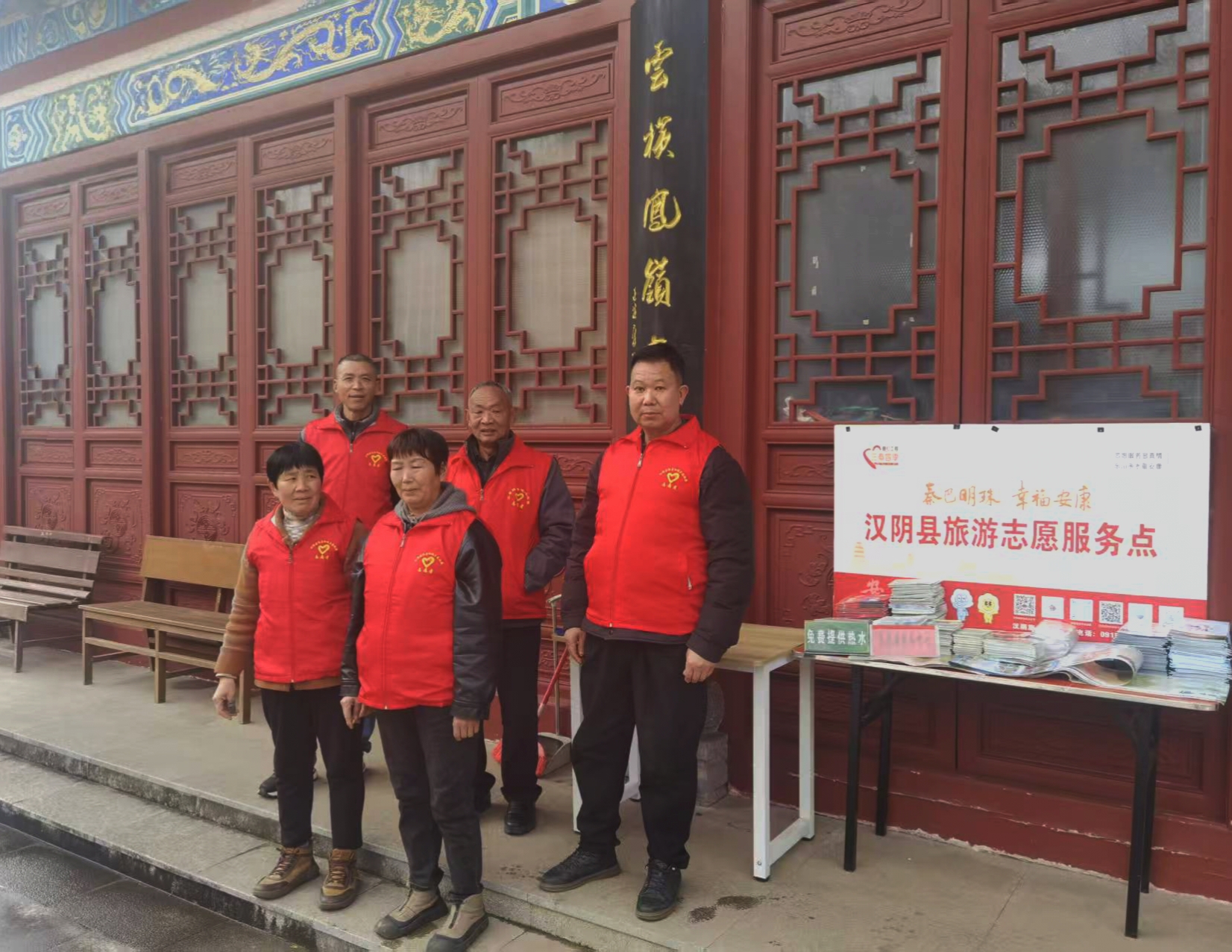 春節(jié)期間,志愿者在漢陰縣龍崗公園堅(jiān)守崗位。他們放棄與家人團(tuán)聚的時(shí)光,用行動(dòng)詮釋奉獻(xiàn)與擔(dān)當(dāng),守護(hù)游客的平安與歡樂(lè)。王磊 攝