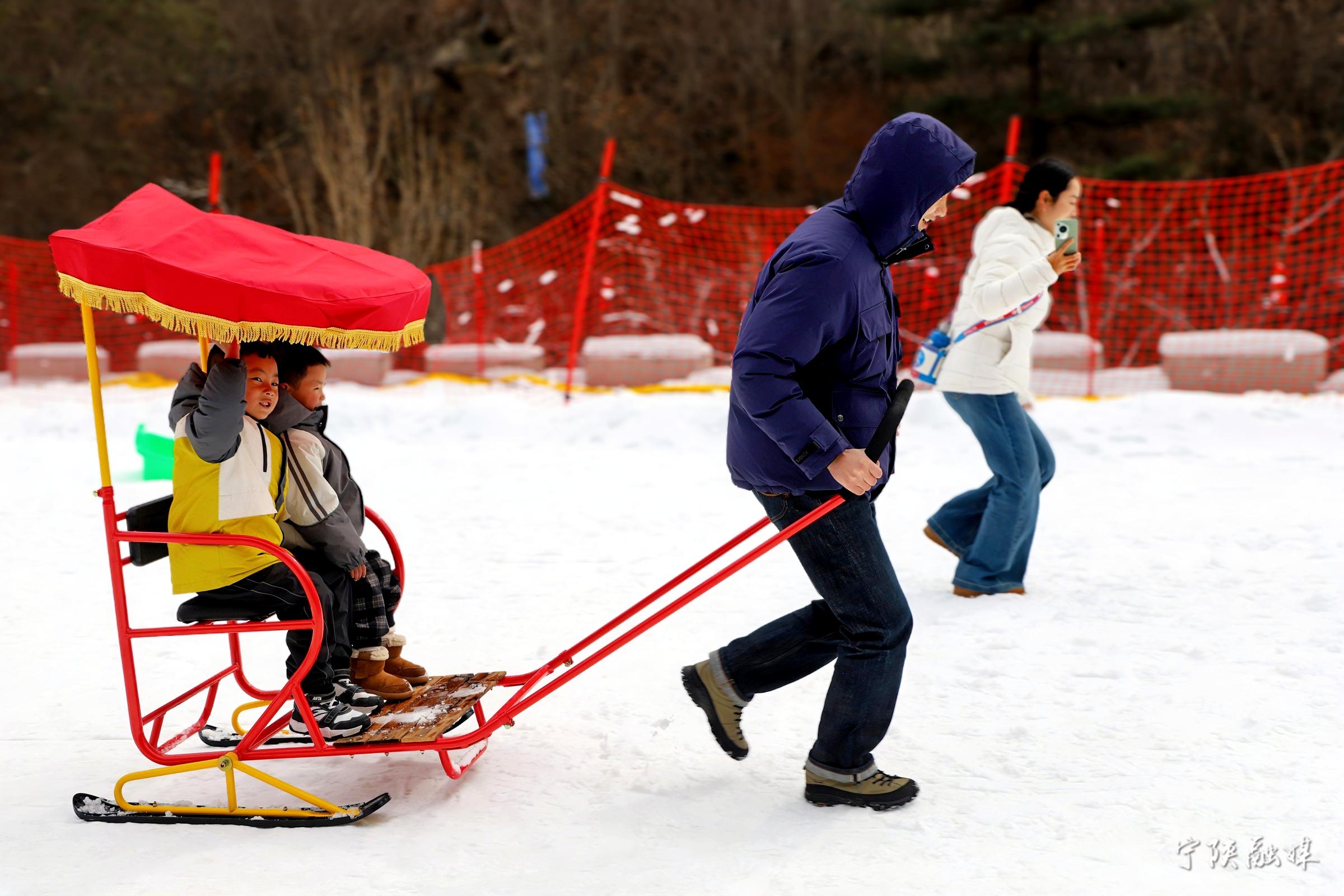 2月18日,游人在寧陜縣皇冠雪鄉(xiāng)體驗(yàn)冰雪娛樂(lè)項(xiàng)目。當(dāng)日皇冠雪鄉(xiāng)接待游客1813人次。黃太萱 攝
