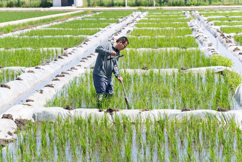 2025年6月18日,在位于黑龍江省雙鴨山市寶清縣的中國(guó)水稻研究所北方水稻研究中心的試驗(yàn)田內(nèi),科研人員取耕層土樣。新華社記者 謝劍飛 攝
