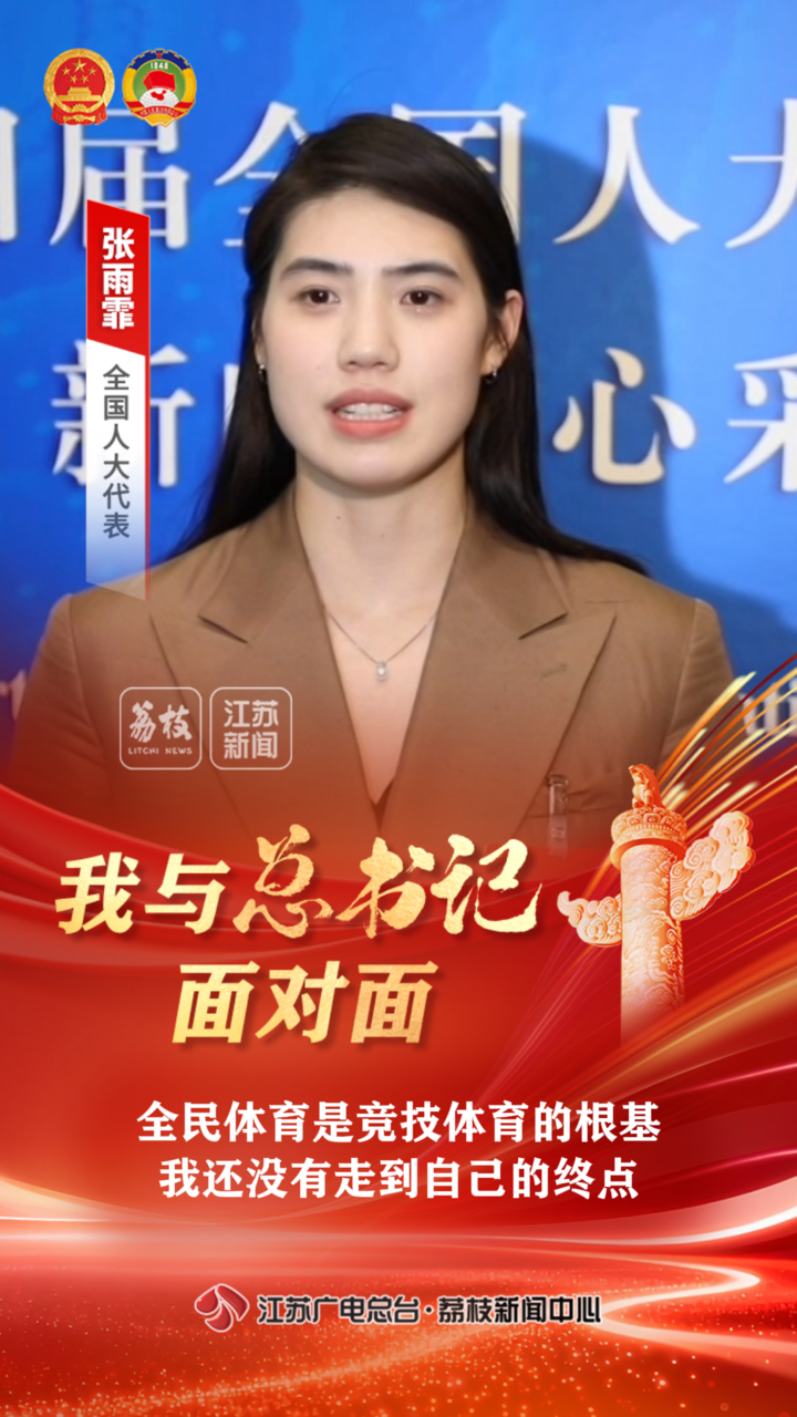 南京體育學(xué)院游泳隊運動員、游泳學(xué)院副院長張雨霏代表,向總書記匯報了“蘇超”等大眾體育對競技體育的促進(jìn)作用,她自己參加奧運的“戰(zhàn)績”和對未來征戰(zhàn)賽場的目標(biāo)和規(guī)劃。