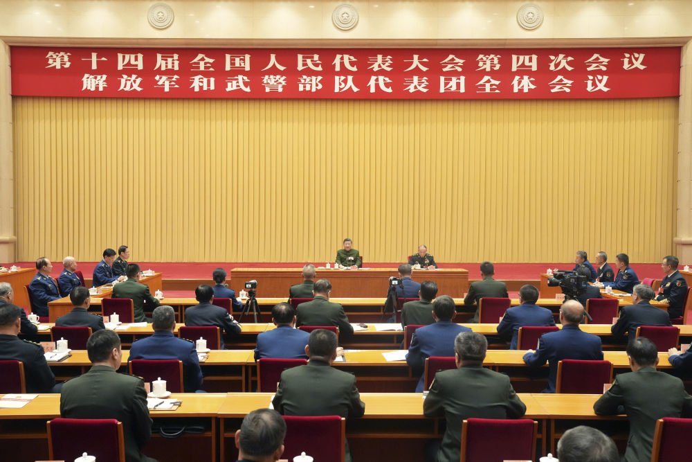 3月7日下午,中共中央總書記、國家主席、中央軍委主席習(xí)近平出席十四屆全國人大四次會議解放軍和武警部隊代表團(tuán)全體會議并發(fā)表重要講話。新華社記者 李剛 攝
