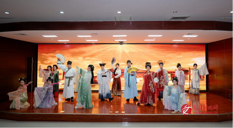 花枝映雅韻,羅衣展風姿。活動現(xiàn)場,女員工們褪去職業(yè)裝,換上襦裙、曲裾等各式漢服,簪花綰發(fā)、輕搖團扇,一顰一笑間皆是溫婉雅致。伴隨著悠揚的古樂,一場精心編排的漢服秀驚艷開場,女職工代表緩步登臺,或頷首低眉、或淺笑嫣然,在詩詞誦讀的映襯下,將中華傳統(tǒng)服飾的典雅之美演繹得淋漓盡致?!敖韼讲蛔岉毭?,須眉亦懷雅意”,更令人驚喜的是,四位男士代表身著儒巾青衫現(xiàn)身助陣,平日里雷厲風行的他們,化身謙謙君子,步履從容間盡顯儒雅風范,現(xiàn)場掌聲與歡笑聲此起彼伏。
