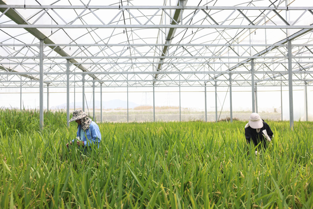 2025年3月21日,工作人員在海南三亞國家南繁科研育種基地收種。新華社記者 張麗蕓 攝