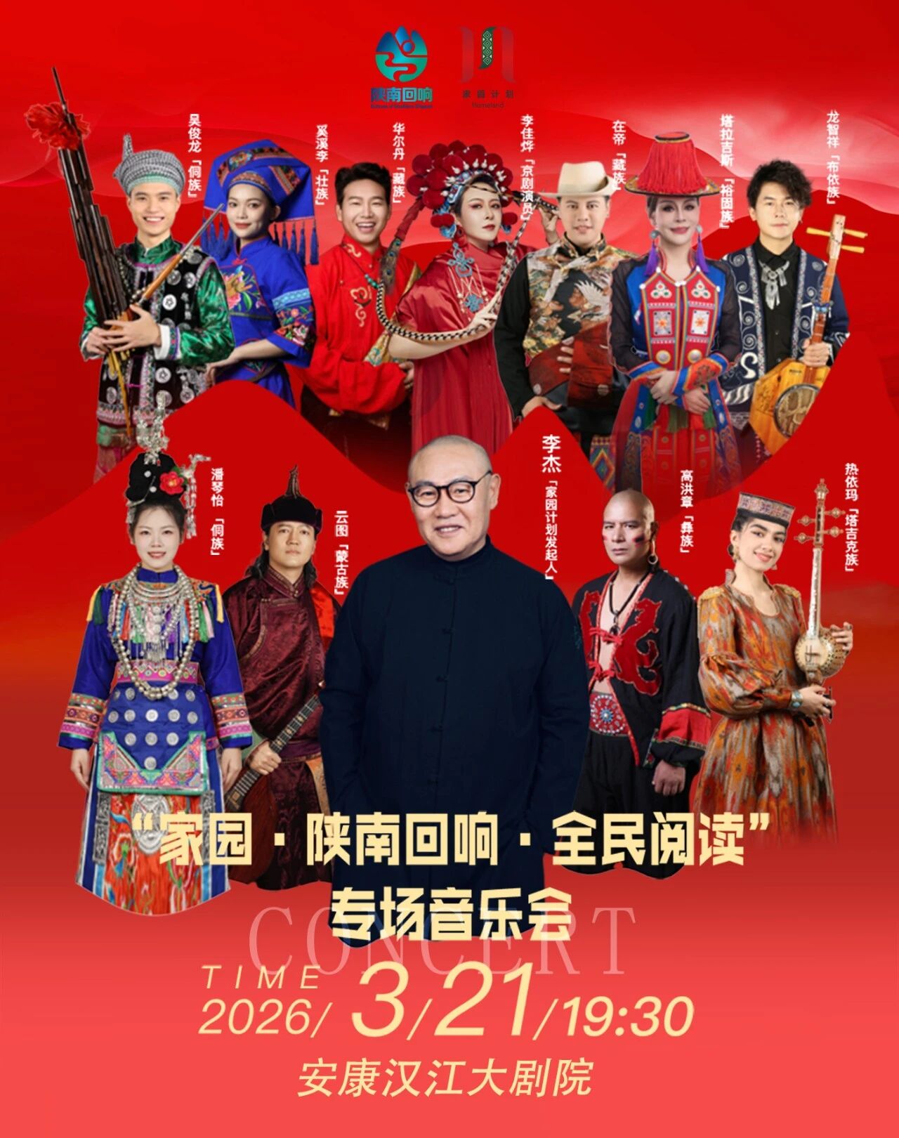 今年2月1日,《全民閱讀促進(jìn)條例》正式施行,標(biāo)志著全民閱讀邁入法治化、規(guī)范化的發(fā)展新階段。條例明確指出,要鼓勵(lì)開(kāi)展內(nèi)容健康、展現(xiàn)文化底蘊(yùn)、形式多樣的閱讀推廣活動(dòng)。在安康,閱讀不僅是靜默的文字,更可以是躍動(dòng)的音符、流淌的旋律。3月21日(周六)19:30,一場(chǎng)別開(kāi)生面的“家園·陜南回響·全民閱讀”專(zhuān)場(chǎng)音樂(lè)會(huì)將在安康漢江大劇院大劇場(chǎng)拉開(kāi)帷幕。這場(chǎng)由著名音樂(lè)人李杰領(lǐng)銜、匯聚九大民族藝術(shù)家的視聽(tīng)盛宴,邀您共赴一場(chǎng)“用歌聲閱讀大地”的詩(shī)意之約。