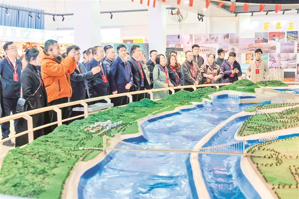 調(diào)研高鐵新城城市展廳。 三峽融媒體中心提供