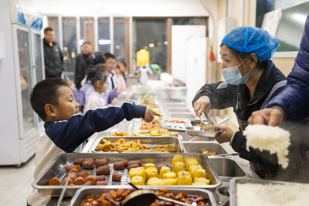 2025年11月25日,放學(xué)的小朋友在雄安新區(qū)容東片區(qū)春明北社區(qū)食堂內(nèi)用餐。春明北社區(qū)食堂每天傍晚為周邊學(xué)生提供營養(yǎng)實(shí)惠的晚餐,有效減輕雙職工家庭負(fù)擔(dān)。