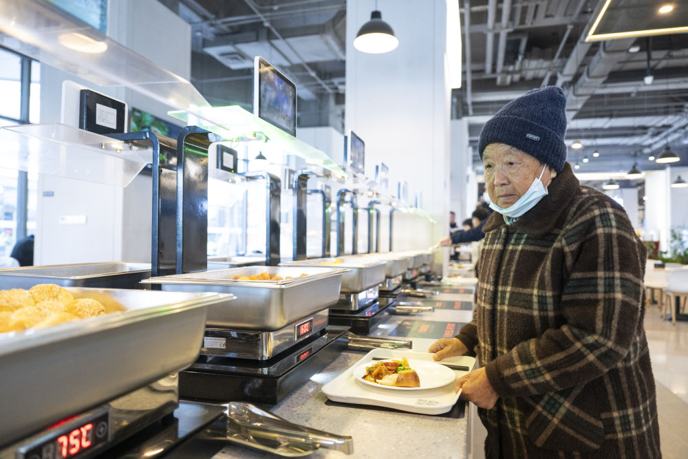 2025年11月25日,老人在雄安新區(qū)啟動(dòng)區(qū)文華社區(qū)華序府智慧食堂內(nèi)取餐。在這座食堂,居民“刷臉”即可完成身份識(shí)別,取餐時(shí)系統(tǒng)自動(dòng)綁定餐盤并實(shí)時(shí)結(jié)算,實(shí)現(xiàn)無感支付。此外,取餐區(qū)具備智能稱重與熱量測算功能、健康一體機(jī)可以生成健康報(bào)告并提供飲食建議。
