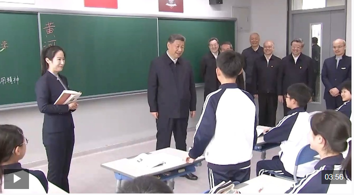 初一(2)班,一堂語文課正在進行中。習近平總書記走進這間教室,同師生交談,了解教學情況。