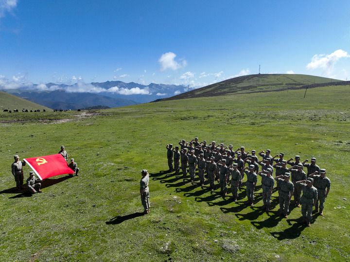 西部戰(zhàn)區(qū)空軍某團(tuán)遠(yuǎn)程機(jī)動訓(xùn)練途中組織官兵舉行重溫入黨誓詞活動(2025年6月30日攝,無人機(jī)照片)。新華社發(fā)(鄧世寧 攝)