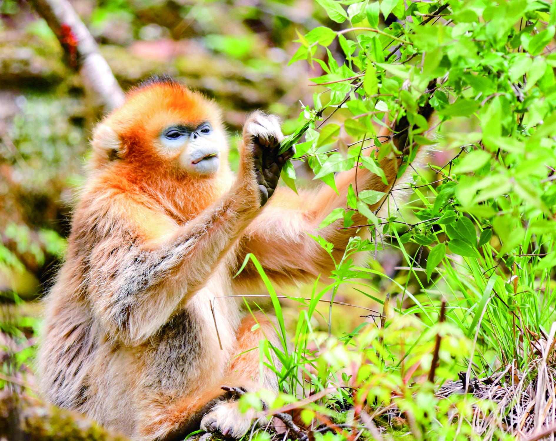 作為典型林間素食動(dòng)物,金絲猴飲食結(jié)構(gòu)天然健康。日常主要取食樹(shù)葉、嫩枝嫩芽、山野花卉、野生果實(shí)、鮮嫩竹筍,冬季食物匱乏時(shí),也會(huì)啃食樹(shù)皮、樹(shù)根、堅(jiān)果充饑,極少捕食昆蟲(chóng)、鳥(niǎo)蛋補(bǔ)充少量蛋白質(zhì)。其胃部特殊分區(qū)結(jié)構(gòu),可高效消化植物粗纖維,適配山林天然食源。