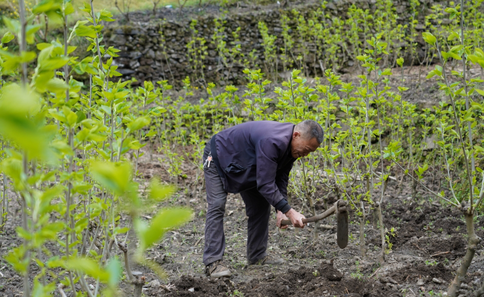 蠶農(nóng)在桑園內(nèi)精心管護(hù)桑樹