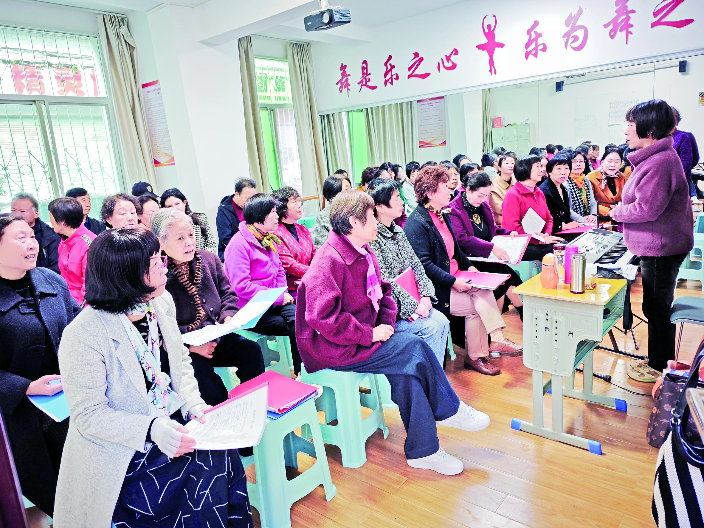 居民在育才社區(qū)老年大學聲樂班上課