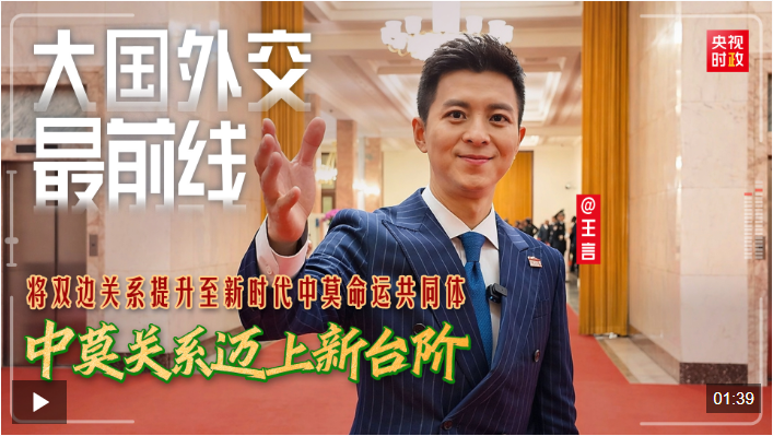 在新的歷史起點(diǎn)上,中莫雙方將如何拓展各領(lǐng)域務(wù)實(shí)合作、實(shí)現(xiàn)共同發(fā)展繁榮?跟著“大國(guó)外交最前線”一起走進(jìn)現(xiàn)場(chǎng)!