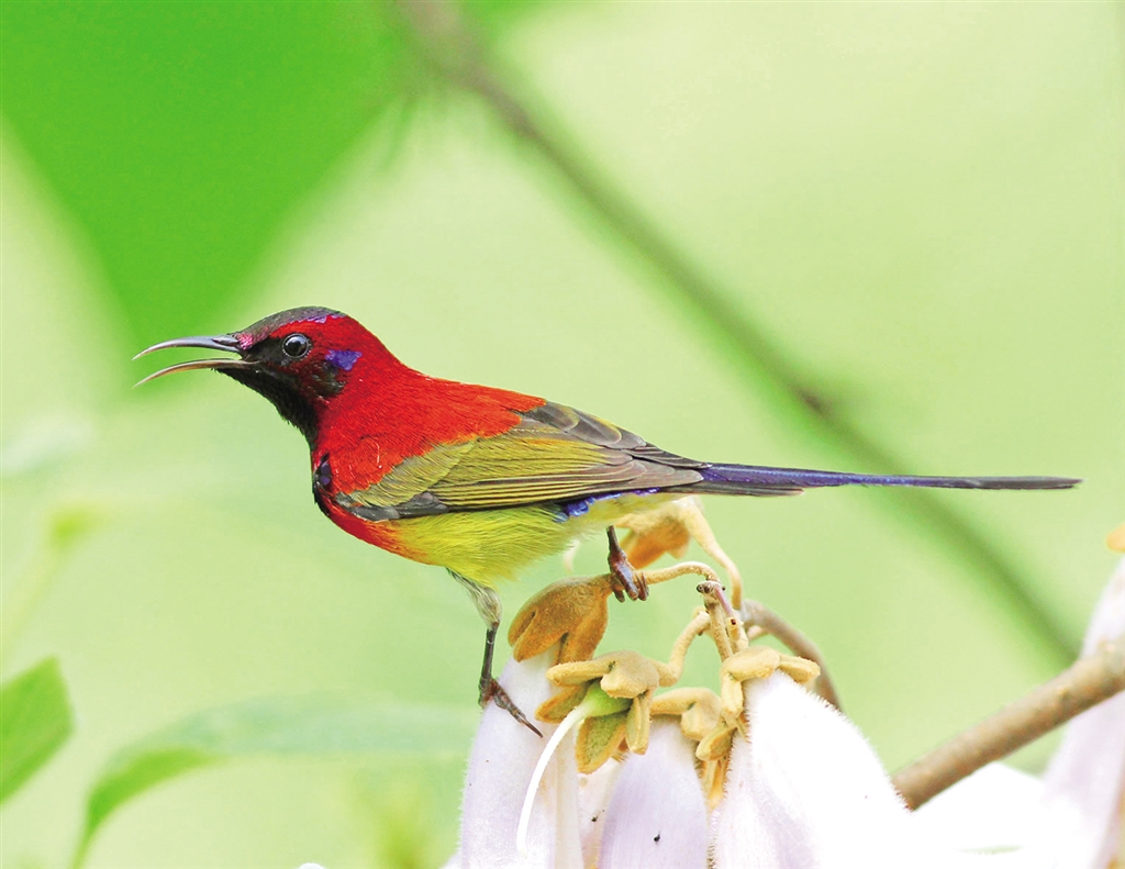 藍喉太陽鳥屬雀形目太陽鳥屬小型鳥類,藍喉太陽鳥羽色艷麗,是很好的觀賞鳥種。為國家“三有”保護動物。