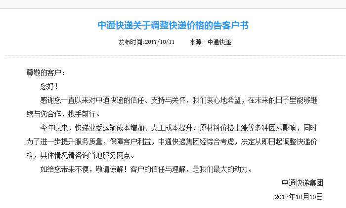 中通快遞官網(wǎng)稱將調(diào)整快遞價格rP4安康新聞網(wǎng)