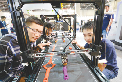 | 2017中國增材制造大會(huì)暨展覽會(huì)7月在杭州國際博覽中心舉行。圖為觀眾參觀一臺(tái)生產(chǎn)型3D打印機(jī)。 |