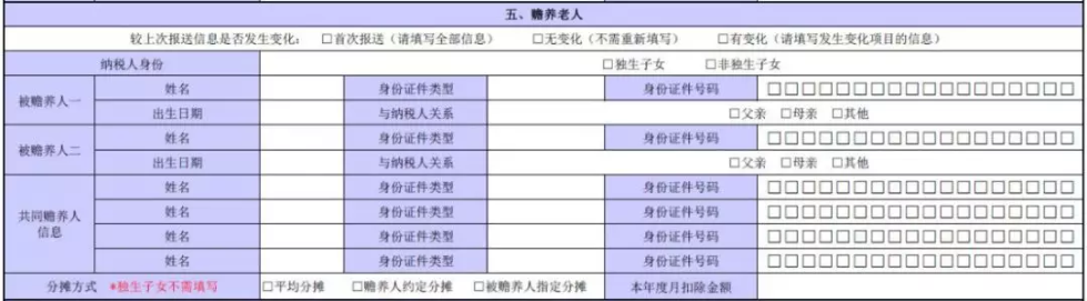 贍養(yǎng)老人一欄中,共同贍養(yǎng)人填寫時(shí)注意,納稅人為非獨(dú)生子女時(shí)填寫本欄,獨(dú)生子女無須填寫。