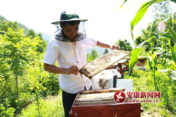 石泉縣迎豐鎮(zhèn)的養(yǎng)蜂大戶葉文章正在魔芋地邊查看蜜蜂生長情況,今年他養(yǎng)了109箱蜜蜂,還帶動了37戶貧困戶養(yǎng)蜂140多箱。蜂箱周圍種槐樹,槐樹周圍種魔芋,這樣的產(chǎn)業(yè)發(fā)展模式不僅提高了土地綜合使用率,還讓蜂農(nóng)一年四季都有活干,能增收。 黃花菜產(chǎn)業(yè)