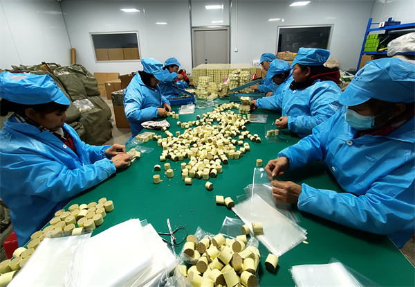 走進毛壩鎮(zhèn)雙新村洋芋粉條生產基地,同樣也是一派繁忙景象,員工巧手一攪、一漏,粉條似銀白絲線簌簌墜下,在空中劃出一道弧線,轉瞬成型。