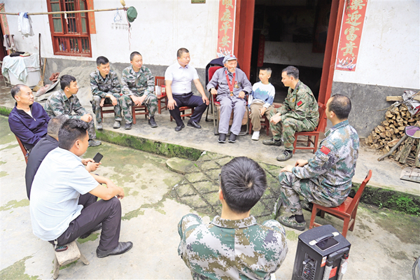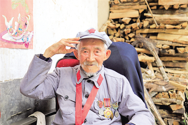 “雄赳赳,氣昂昂,跨過(guò)鴨綠江……”5月11日上午11時(shí),在嵐皋縣堰門(mén)鎮(zhèn)進(jìn)步村抗美援朝老兵舒業(yè)余的家門(mén)前,身穿老式軍裝、披戴“抗戰(zhàn)老黨員”大紅綬帶的舒業(yè)余,正在為前來(lái)賀壽的人唱《中國(guó)人民志愿軍戰(zhàn)歌》。雖已93歲高齡,但他唱起這首軍歌來(lái)仍渾身帶勁、鏗鏘有力,贏得大家陣陣掌聲。