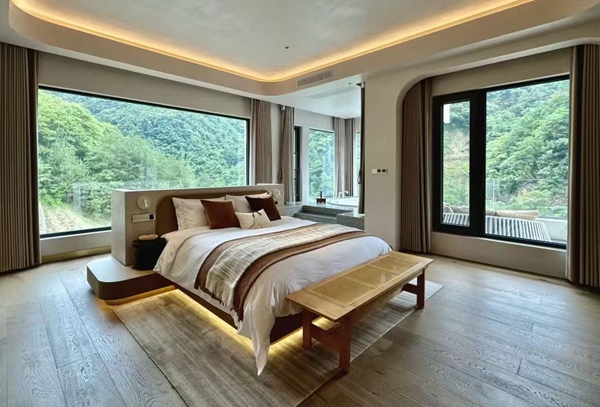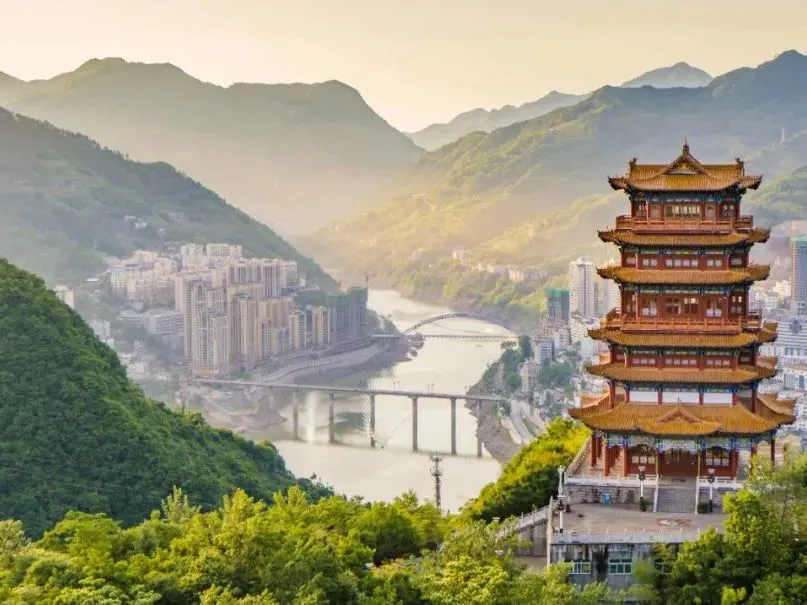 或是打卡南江湖景區(qū)中的巴山硒院,背后是秋意漸濃的山野,眼前是現(xiàn)代的建筑物,繁花里縱覽繁華。