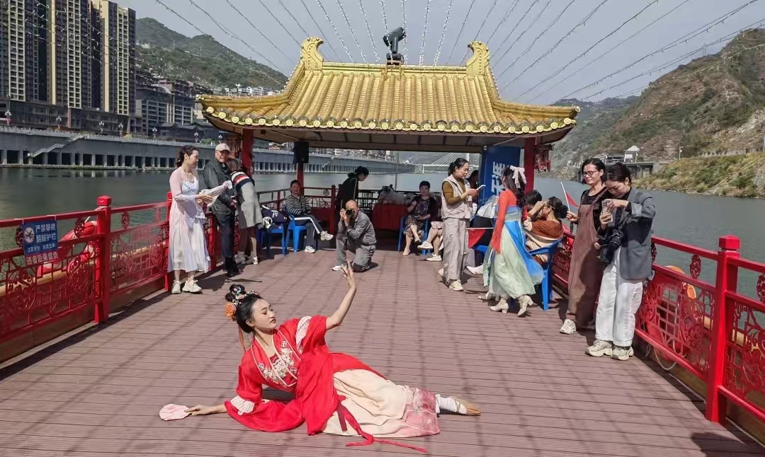 漢江畫廊游船:在漢江畫廊游船上,舞蹈《黃梅有憂》、健身操《中國喜事》、拉丁舞、龍船調(diào)、古典獨舞等沉浸式演出活動輪番上場,現(xiàn)場一片掌聲、歡呼聲和叫好聲,瞬間點燃了旅客的熱情。