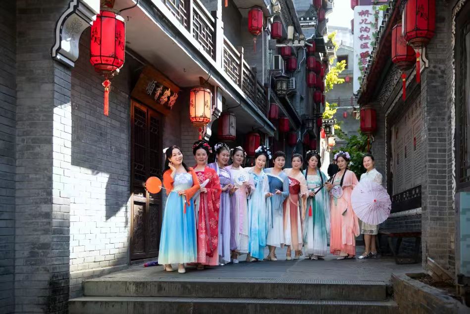 橋兒溝景區(qū):10月2日,在橋兒溝街區(qū),一場漢服快閃秀活動在這里精彩上演,吸引大批游客隨著巡游隊伍暢游最美古街,充分展示了傳統(tǒng)服飾的文化魅力。
