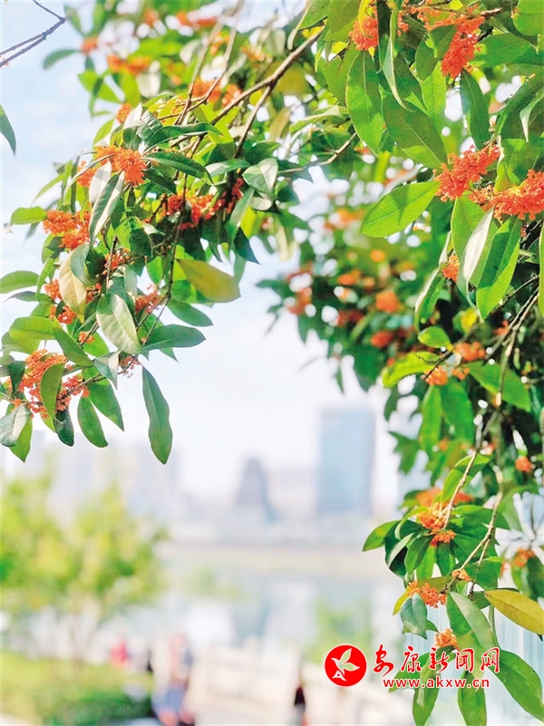 桂花開(kāi)放,濃郁的花香撲面而來(lái)。