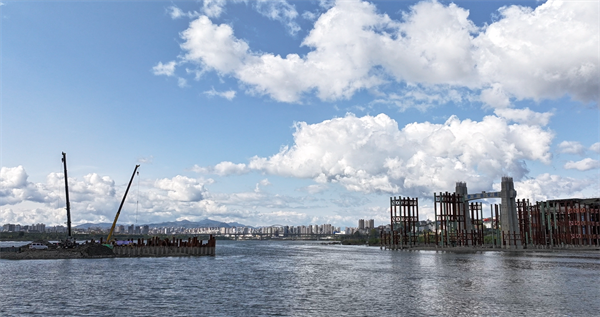 2024年12月4日,正在建設(shè)中的新關(guān)廟漢江大橋。錢運(yùn)立 攝
