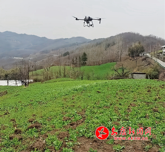眼下正值春季管護黃金期,在白河縣冷水鎮(zhèn)興隆村糧油示范田里,無人機在油菜田上方來回穿梭,均勻細密地噴灑農(nóng)肥,抑制病菌繁殖,提高油菜產(chǎn)量。周紫薇 攝