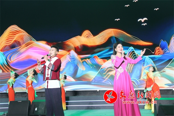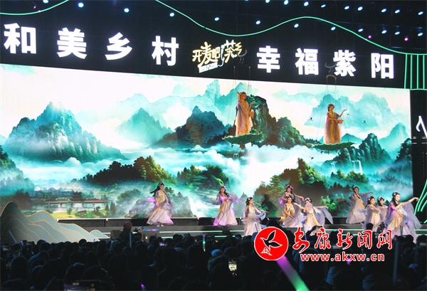 王彪宣布紫陽茶文旅融合IP“開麥吧!茶鄉(xiāng)”啟幕。活動(dòng)以“和美鄉(xiāng)村 幸福紫陽”為主題;顒(dòng)現(xiàn)場燈光如晝,隨著激情的旋律,17個(gè)鎮(zhèn)代表隊(duì)陸續(xù)進(jìn)場。600架無人機(jī)騰空而起,以茶為主題,以蒼穹為幕、夜空作畫,演繹《茶歌紫陽·幸福安康》,組成“開麥吧·茶鄉(xiāng)”“漢江畫廊 茶歌紫陽”“紫陽富硒茶 越喝越想TA”等巨型字樣時(shí),現(xiàn)場爆發(fā)出雷鳴般的掌聲。期間,活動(dòng)總導(dǎo)演作“開麥吧!茶鄉(xiāng)”賽制介紹。伴隨著現(xiàn)場觀眾的激情歡呼,文藝節(jié)目相繼上演!堕_麥吧!茶鄉(xiāng)》《茶史長歌》《吉祥頌》《故鄉(xiāng)》《紫陽仙子》《硒谷放歌》《高山茶語》等節(jié)目將紫陽豐富的旅游資源、特色產(chǎn)業(yè)、人文風(fēng)情展現(xiàn)得淋漓盡致,掌聲如潮,喝彩聲、吶喊聲此起彼伏。中國內(nèi)地歌手韓磊演唱的歌曲《走四方》《等待》《再借五百年》《不忘初心》將現(xiàn)場氣氛推向高潮。絢爛的燈光秀、煙花秀閃耀全場,光與影的交織變換構(gòu)成了一幅幅絕妙畫卷。在全場所有演員同唱蹦茶迪《嗨·茶鄉(xiāng)》后,文藝演出落下帷幕。