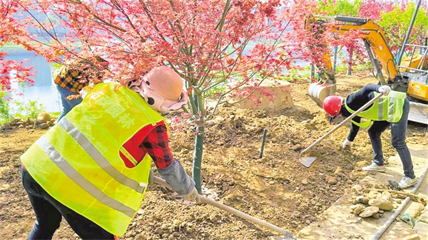 “該項目聚焦區(qū)域防洪能力提升與景觀功能優(yōu)化,重點推進花架與花箱安裝、配套設(shè)施完善、整體綠化作業(yè)等關(guān)鍵節(jié)點,現(xiàn)完成總工程量的30%,確保‘五一’節(jié)前建成投用。”市市政園林處公園管理科副科長龔越介紹。