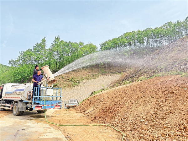 4月25日,平利縣長安鎮(zhèn)金沙河村安排運輸投送農(nóng)業(yè)生產(chǎn)用水,對500畝烤煙幼苗進(jìn)行灌溉。胡鈴鈴 攝