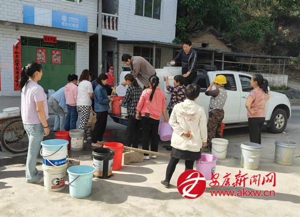 5月19日,平利縣長(zhǎng)安鎮(zhèn)積極應(yīng)對(duì)旱情,組織常安鄉(xiāng)建公司開展送水入戶行動(dòng),確保村民飲水安全。圖為鎮(zhèn)村干部頂著烈日挨家配送。胡鈴鈴 攝受高溫干旱天氣影響,漢陰……