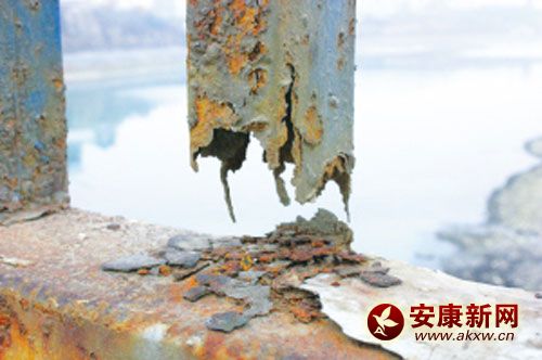 安康新網(wǎng)訊 記者 安天:近日,市民王先生向記者反映,他送孩子上學(xué)途經(jīng)安康三橋,發(fā)現(xiàn)兩邊很多欄桿的油漆已經(jīng)銹跡斑斑,而且很多欄桿已經(jīng)斷裂,要是孩子稍微用力……