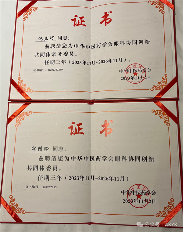 眼科醫(yī)院首席專家沈蘭珂教授被聘為中華中醫(yī)藥學(xué)會眼科協(xié)同創(chuàng)新共同體常委和陜西省中醫(yī)藥學(xué)會眼科專委會顧問、眼科醫(yī)院院院長寇列玲被聘中華中醫(yī)藥學(xué)會眼科協(xié)同創(chuàng)新共同體委員和陜西省中醫(yī)藥學(xué)會眼科專委會副主任委員、陜西省中西醫(yī)結(jié)合學(xué)會整形美容專委會副主任委員,并獲陜西省中西醫(yī)結(jié)合藥學(xué)會先進(jìn)工作者;陜西省保健學(xué)會防盲專業(yè)委員會先進(jìn)委員、陳利、王滿華、吉夢、張亞榮、周楊、張祥等10余人新增省中醫(yī)藥學(xué)會眼科專委會常委及委員任職。
