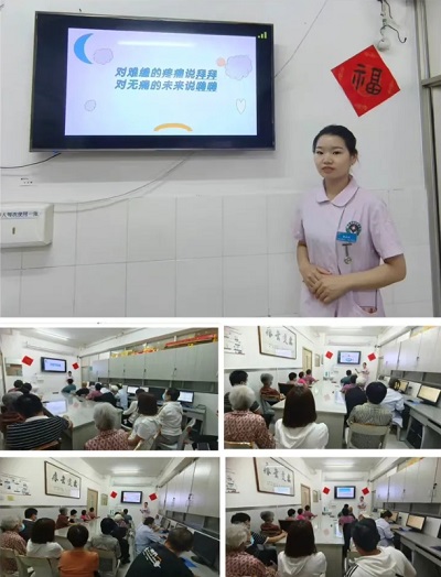 腫瘤專科護士王媛媛介紹了《對疼痛說拜拜》,分別就正確認識疼痛、疼痛評估工具、疼痛強度評分、疼痛患者如何參與自我護理及家屬在給疼痛患者用藥時注意事項等方面進行了詳細的講解。