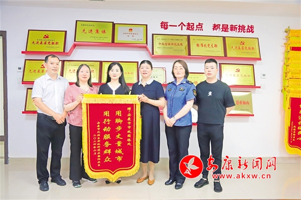本網(wǎng)訊(通訊員 錢運立)“現(xiàn)在的朝陽街道路平整、排水通暢、綠化美觀,你們用腳步丈量城市,解決的問題正是社區(qū)百姓心頭所盼,我們代表轄區(qū)群眾感謝你們的用心服務(wù)。”7月9日,漢濱區(qū)朝陽社區(qū)書記袁小紅一行,專程為市市政園林處送來“用腳步丈量城市,用行動服務(wù)群眾”的錦旗。
