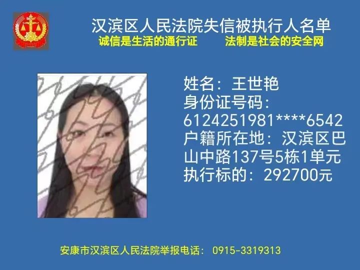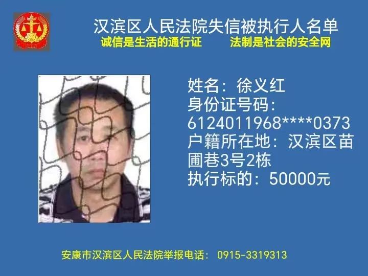 曝光失信 | 安康市漢濱區(qū)人民法院失信被執(zhí)行人曝光名單(2023年第7期)