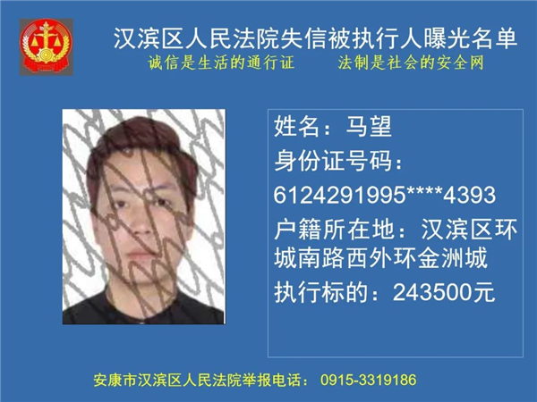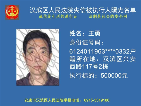 曝光失信 | 安康市漢濱區(qū)人民法院失信被執(zhí)行人曝光名單(2022年第1期)