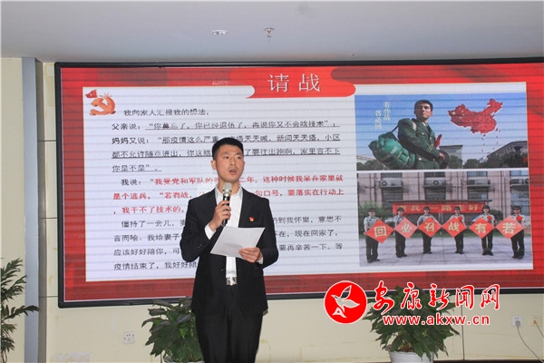 本網(wǎng)訊(記者 張世虎 張喬)青春心向黨,建功新時(shí)代;戰(zhàn)“疫”路上,感謝有你。4月26日, 我市戰(zhàn)“疫”青春故事宣講報(bào)告預(yù)賽活動(dòng)在安康日?qǐng)?bào)社成功舉辦,來自全市各縣區(qū)的37名選手講述了自己和身邊感人的戰(zhàn)“疫”故事。