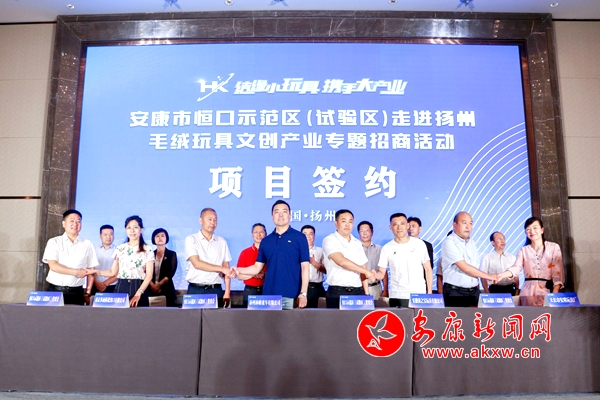 推介會上,恒口示范區(qū)和市直相關(guān)部門分別就營商環(huán)境、毛絨玩具產(chǎn)業(yè)政策、金融支持政策及重點項目作了推介。恒安玩具有限公司,安康市毛絨玩具文創(chuàng)產(chǎn)業(yè)協(xié)會負責(zé)人和揚州市工商聯(lián)、市毛絨玩具行業(yè)協(xié)會、企業(yè)代表分別發(fā)言,F(xiàn)場簽約項目16個,總金額額18.5億元,涵蓋毛絨玩具文創(chuàng)產(chǎn)業(yè)創(chuàng)意設(shè)計、生產(chǎn)加工、倉儲物流和運營策劃等全產(chǎn)業(yè)鏈條和醫(yī)療康養(yǎng)、現(xiàn)代教育等諸多領(lǐng)域。
