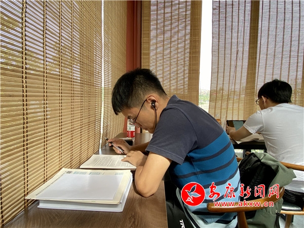 正在龍舟文化園閱讀吧內(nèi)看書的趙浩文是中南大學大一的學生,今年暑假他常常泡在閱讀吧學習,“我一般早上八點鐘過來學習看書,中午吃個飯,然后看書看到下午六點多回家。每天都在學習英語知識以及預習大二的一些課程,感覺在閱讀吧學習很安靜,而且里面裝有空調(diào),環(huán)境好,F(xiàn)在有些場所恢復了24小時的自助服務,也滿足了我們夜間讀書的需求。閱讀吧是我們這些學生學習和備考的理想場所。”