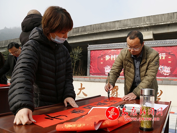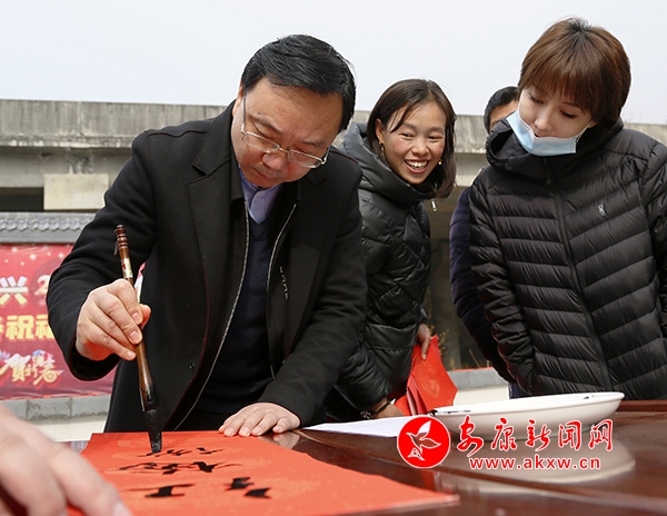 本網(wǎng)訊 2月5日上午,在春節(jié)來臨之際,安康日報(bào)社組織人員赴幫扶點(diǎn)——漢濱區(qū)流水鎮(zhèn)學(xué)坊埡社區(qū)開展“鄉(xiāng)村振興文化先行”迎新春義寫春聯(lián)活動(dòng),為村民們送去新年的祝福。市書協(xié)主席王曉琪受邀參加活動(dòng)。