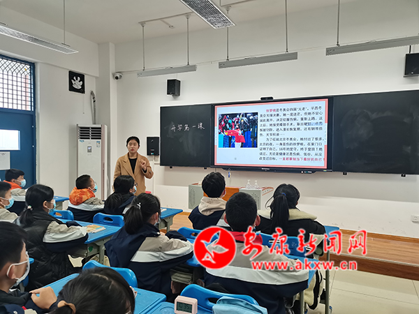 走進漢濱初中高新校區(qū)初一年級23班,語文教師劉麗以“‘虎’力全開,做最好的自己”為題,為學(xué)生們帶來了“開學(xué)第一課”。她以經(jīng)典詩歌《做最好的自己》為切入點,隨后通過課件展示了我國冰雪項目運動員谷愛凌、徐夢桃、金博洋等人在冬奧會取得的優(yōu)異成績,深入挖掘成績背后他們拼搏奮發(fā)的冬奧精神,引發(fā)了學(xué)生們熱烈響應(yīng),紛紛舉手表達自己的觀看冬奧會的感悟體會。