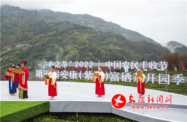 本網(wǎng)訊(記者 李俊 通訊員 鄭小虎 陳昌美 )3月22日,中國農(nóng)民豐收節(jié)暨第五屆“春之茶”紫陽富硒茶春茶開園活動在紫陽縣向陽鎮(zhèn)富硒茶觀光園舉行。至此,標(biāo)志著紫陽25萬畝富硒茶全面進入“采茶季”。