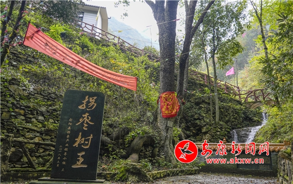 本網(wǎng)訊(記者 李。┰谘柺邪琢(zhèn)佛洞村的山溝中,生長著一棵枝干綿延、枝繁葉茂的“高齡”巨樹——拐棗樹。樹下立著一塊碑文記載,相傳此樹為先秦時(shí)期游方術(shù)士所種,是目前全球所發(fā)現(xiàn)的野生較古老果樹樹種。樹體高42米,主干直徑為3.5米,整棵樹盤根錯(cuò)節(jié),亭亭如蓋,因?yàn)闃潺g久遠(yuǎn),被鄉(xiāng)民們奉為“神樹”。